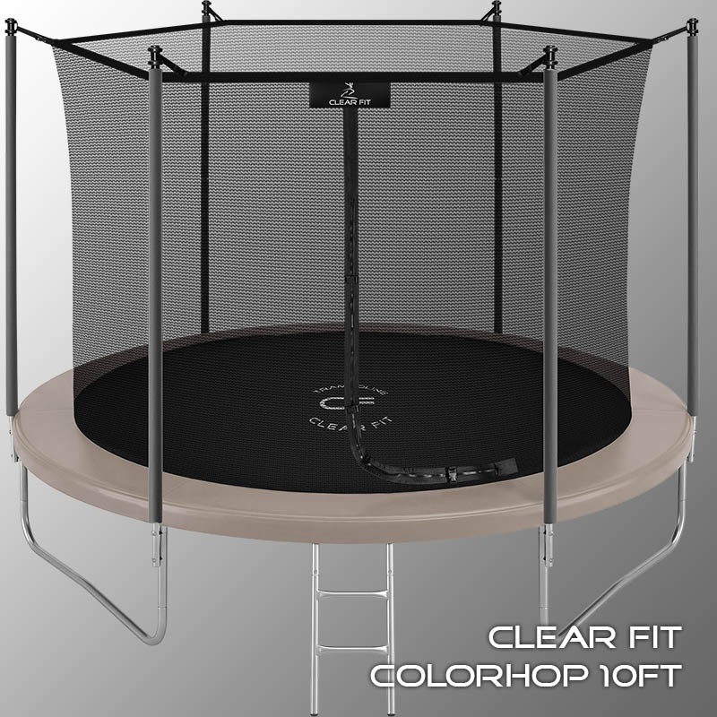 Каркасный батут Clear Fit серии ColorHop доступен в четырех цветах: желтый, оранжевый, серый и зеленый. Эта серия отличается комфортом и надежностью. Прочная рама из качественных материалов и надежная защитная сетка, закрепленная на прыжковом полотне и дополненная защитой входа, обеспечивают безопасность и удовольствие от тренировок. Батуты ColorHop — это увлекательное и полезное развлечение для всей семьи. В комплект входят: батут, верхняя защитная сетка, защитный мат и лестница, что делает его идеальным для использования на даче. Размер батута 10 футов (диаметр прыжковой поверхности 2.62 м) позволяет комфортно заниматься взрослым и веселиться детям любого возраста. Верхняя защитная сеть предотвращает падения, усиленная молния и дополнительные элементы входа защищают малышей от случайного проникновения или падения. Оцинкованная стальная рама, качественные комплектующие и погодостойкие метизы обеспечивают долговечность и устойчивость батута, защищая его от коррозии. Максимальный вес пользователя — до 160 кг.