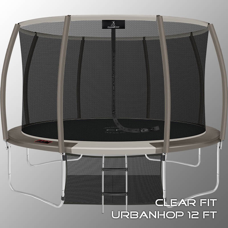 В 2026 году представлена обновленная линейка с улучшенной конструкцией каркаса. Усиление достигнуто за счет использования прочных Т-образных кронштейнов из металла толщиной 1.9 мм. Кроме того, в комплектацию добавлен карман для обуви. Каркасный батут с защитной сеткой Clear Fit серии UrbanHop — отличаются комфортом и надежностью. Надежная рама из качественных комплектующих, прочная защитная сеть снабжена прямым креплением к прыжковому полотну и дополнительной защитой входа, наверху каркасное жесткое крепление, сеть не провисает и не слетает во время тренировок. Увлекательный, полезный и безопасный тренажер для всей семьи. Батуты серии UrbanHop 10Ft, 12Ft, 14Ft и 16Ft поставляются в оптимальной для комфорта и безопасности комплектации: батут, верхняя защитная сеть, защитный мат, лестница и карман для обуви. Батут размером в 12 футов с прыжковой поверхностью 3.21 м идеально подходит для пользователей любого возраста, размеры полотна позволяют комфортно тренироваться взрослым и развлекаться детям, включая подростков. Верхняя защитная сеть оберегает от падений, усиленная молния и дополнительная защита входа уберегут малышей от случайного входа или падения. Надежный каркас из оцинкованной стали, качественные комплектующие и погодостойкие гальванизированные метизы рамы делает батут безопасным, устойчивым, надежным, гарантируют полную защиту от коррозии и долгий срок службы. Максимальный вес пользователя батута UrbanHop 12Ft — до 200 кг.