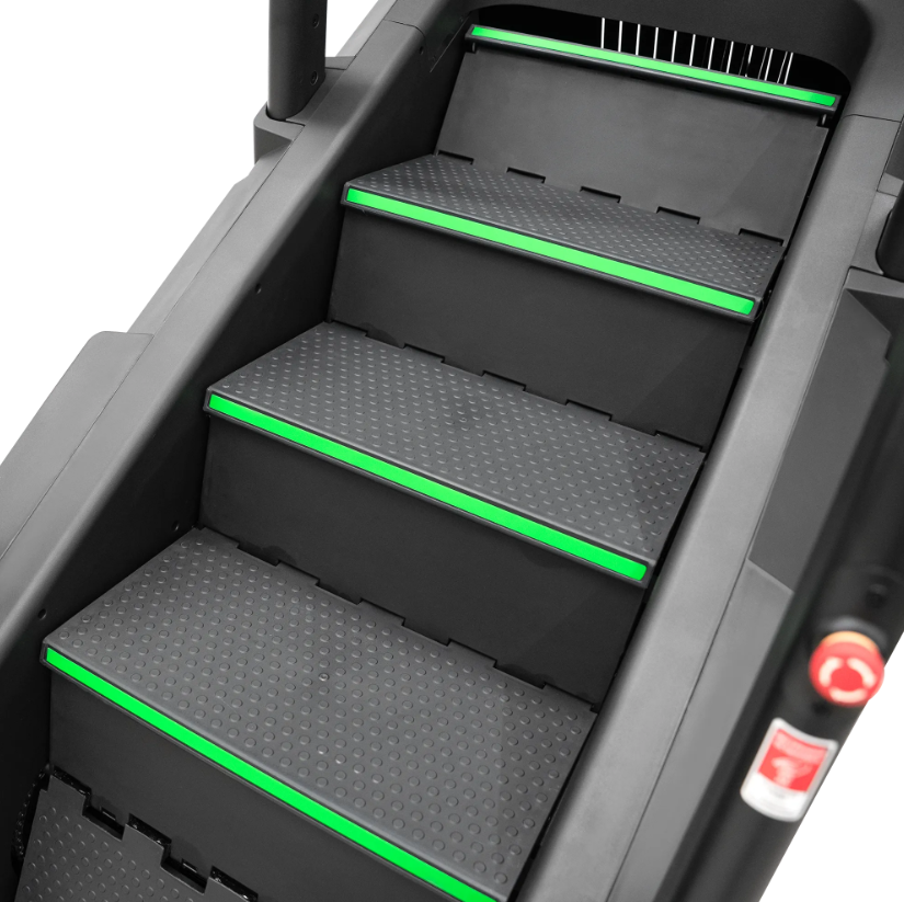BRONZE GYM C1000M PRO TURBO — профессиональная лестница-эскалатор нового поколения для кардиозоны, где ценится надёжность, функциональность и комфорт. Модель создана с учётом высоких требований к оборудованию в залах с большой проходимостью. Усиленная конструкция, широкий диапазон скоростей, эргономичные поручни и нескользящие ступени обеспечивают уверенную и безопасную тренировку на всех уровнях подготовки. Инновационные технологии: Система EMS (электромагнитное сопротивление) для точного контроля нагрузки Современный LED-дисплей с интуитивным управлением Удобные рукоятки с кнопками быстрой регулировки Беспроводная зарядка для смартфона Расширенный функционал: 40 программ тренировок Контроль пульса, шагов, дистанции, калорий, уровня нагрузки 15 уровней интенсивности: от 14 до 160 шагов в минуту Угол наклона 35° (75%) Размер ступени: 500 × 260 × 183 мм 3 активные ступени, 9 в общей конструкции Безопасность и удобство: Самоблокирующаяся тормозная система Отключение при отсутствии пользователя Система защиты при весе менее 30 кг BRONZE GYM C1000M PRO TURBO — максимум калорий, минимум компромиссов. Прокачай выносливость. Почувствуй ритм. Выбирай BRONZE GYM.