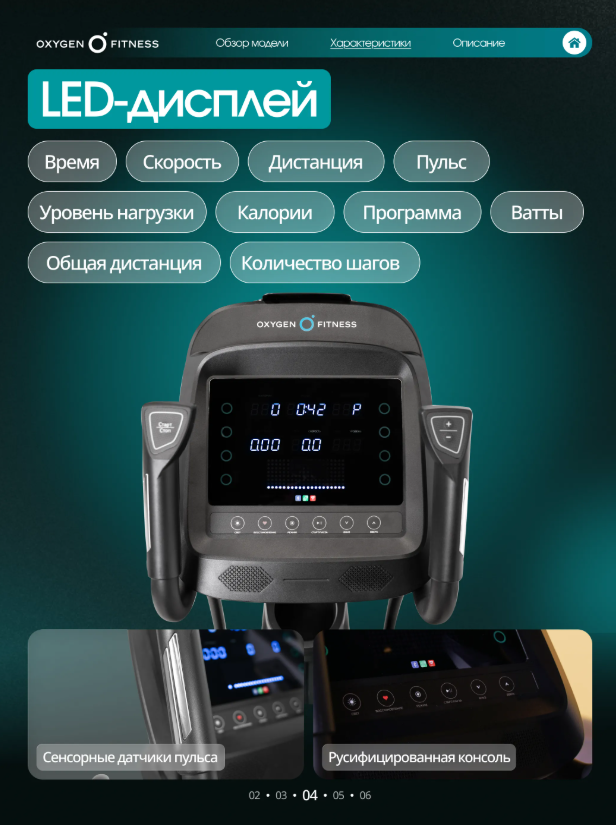 OXYGEN FITNESS MINT — продвинутый эллиптический тренажёр для домашних тренировок, ориентированный на пользователей, которые хотят получить клубный уровень нагрузки и биомеханики у себя дома. Модель сочетает длинный шаг, минимальное расстояние между педалями, электромагнитную систему нагружения и расширенный программный функционал, обеспечивая эффективные и безопасные кардиотренировки для всего тела. Тренажёр построен на массивной высокопрочной раме с антикоррозийной обработкой и двухслойной покраской, что гарантирует устойчивость и долгий срок службы. Корпус выполнен из ударопрочного полистирола HIPS, устойчивого к износу и механическим нагрузкам. Ключевые параметры движения: • Инерционный вес маховика 30 кг (BioFusion™) при реальном весе 10 кг — плавный, стабильный и тихий ход без рывков. • Длина шага 540 мм — максимально естественная амплитуда, близкая к беговой, подходит пользователям разного роста. • Минимальное расстояние между педалями — 60 мм, что значительно снижает нагрузку на колени и тазобедренные суставы. • Дисковый шатун — высокая надёжность и точность передачи усилия. • Ручная регулировка угла наклона (3 уровня) позволяет смещать акцент нагрузки и разнообразить тренировочный процесс. Увеличенные антискользящие педали обеспечивают устойчивое и безопасное положение стоп во время занятий. OXYGEN FITNESS MINT использует электромагнитную систему нагружения с 16 уровнями сопротивления, управляемыми электронно. Это обеспечивает точную настройку интенсивности тренировки — от восстановительных до высокоинтенсивных кардиосессий. Тренажёр оснащён LED-дисплеем, отображающим полный набор тренировочных показателей: • время, скорость, дистанция, • калории, пульс, уровень нагрузки, • программа, Ватты, количество шагов, • общая дистанция. Программный пакет включает 24 режима тренировки: • быстрый старт и ручной режим, • 12 предустановленных программ, • 4 пользовательские программы, • 4 пульсозависимые программы, • программа целевого пульса, • жироанализатор, • режим работы по Ваттам, • тест восстановления. Для контроля сердечного ритма предусмотрены сенсорные датчики на поручнях, а также возможность подключения Bluetooth-кардиодатчика (приобретается отдельно). OXYGEN FITNESS MINT — это эллиптический тренажёр для тех, кто ищет серьёзный инструмент для домашних кардиотренировок с продуманной биомеханикой, расширенной аналитикой и современными цифровыми возможностями.