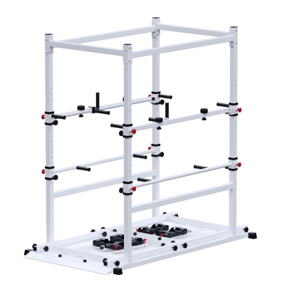 Вертикальные стойки оснащены поручнями со встроенными вращающимися рукоятками, которые поддерживают как горизонтальный, так и вертикальный хваты. Это повышает вариативность движений и адаптацию под индивидуальные особенности пользователя.