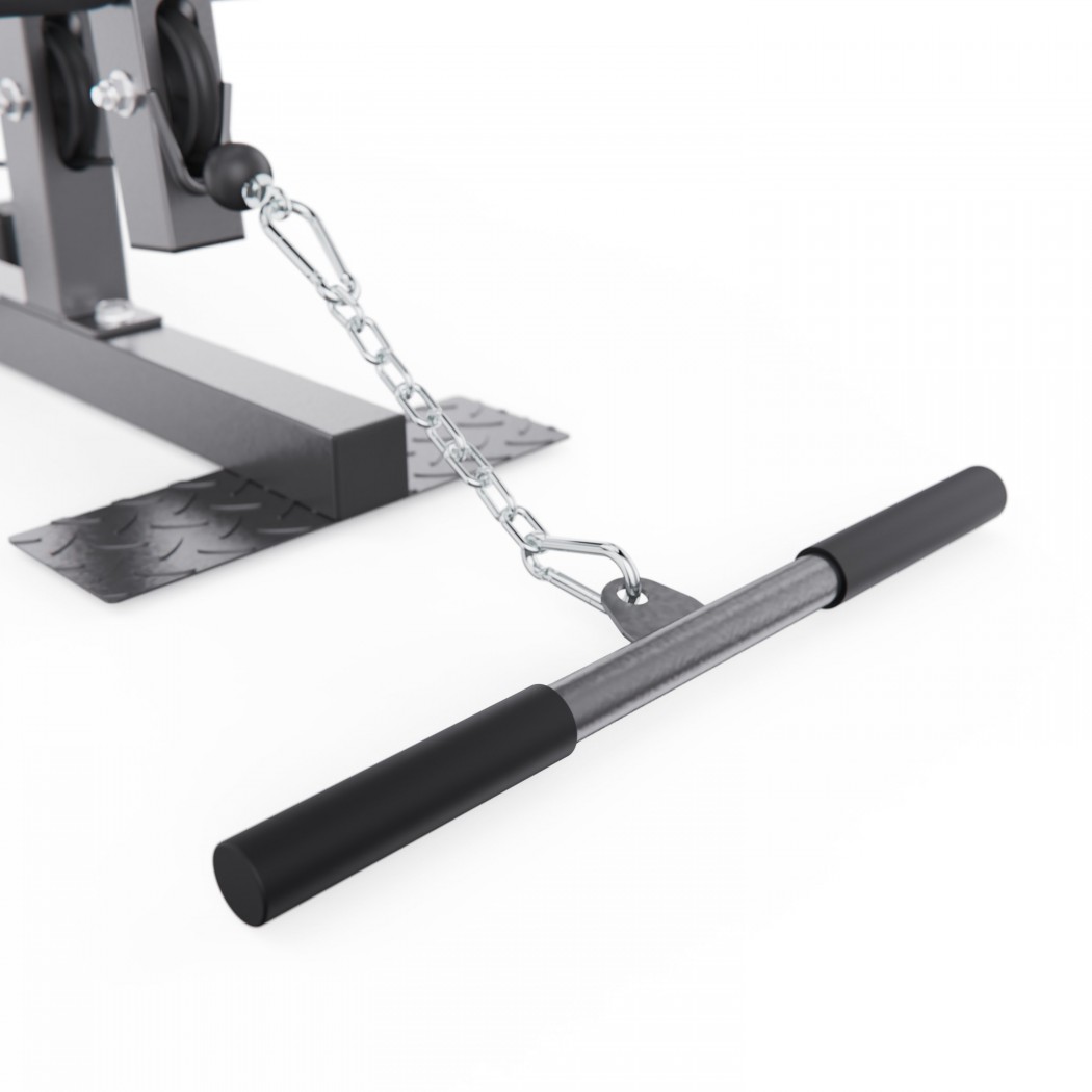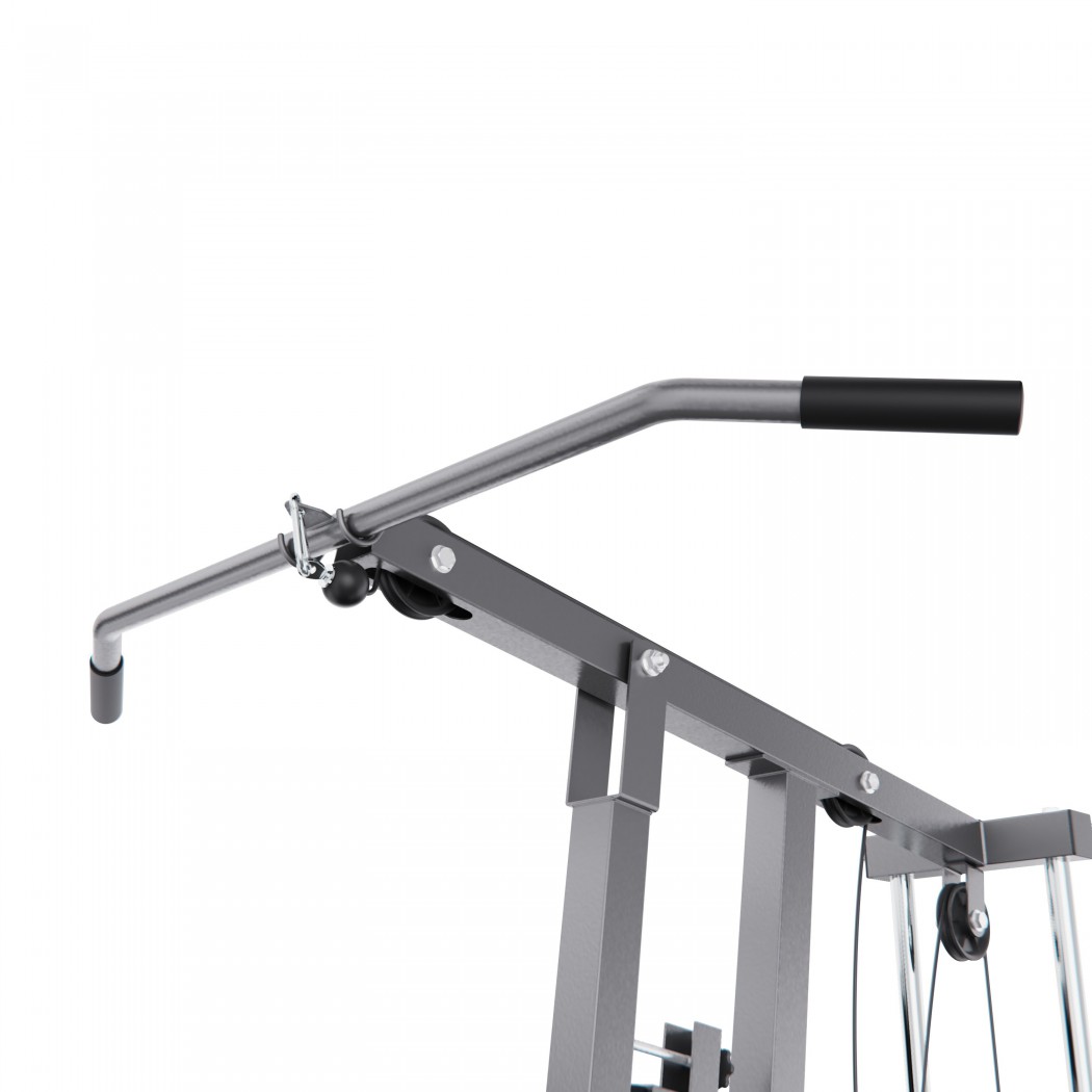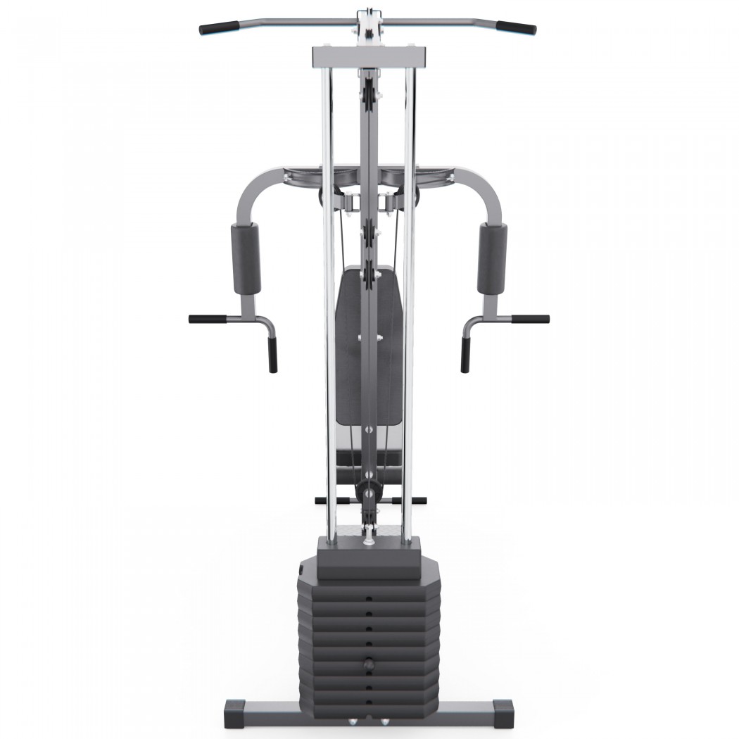 Многофункциональный силовой комплекс позволяет выполнять упражнения на грудь, спину, плечи, руки, пресс и ноги. В оснащение входят верхняя и нижняя тяга, а также тренажер «бабочка», что значительно расширяет возможности тренировок. Нижний валик предназначен для фиксации ног и выполнения упражнений на разгибание и сгибание, а также обеспечивает устойчивое положение тела при работе с верхней тягой.