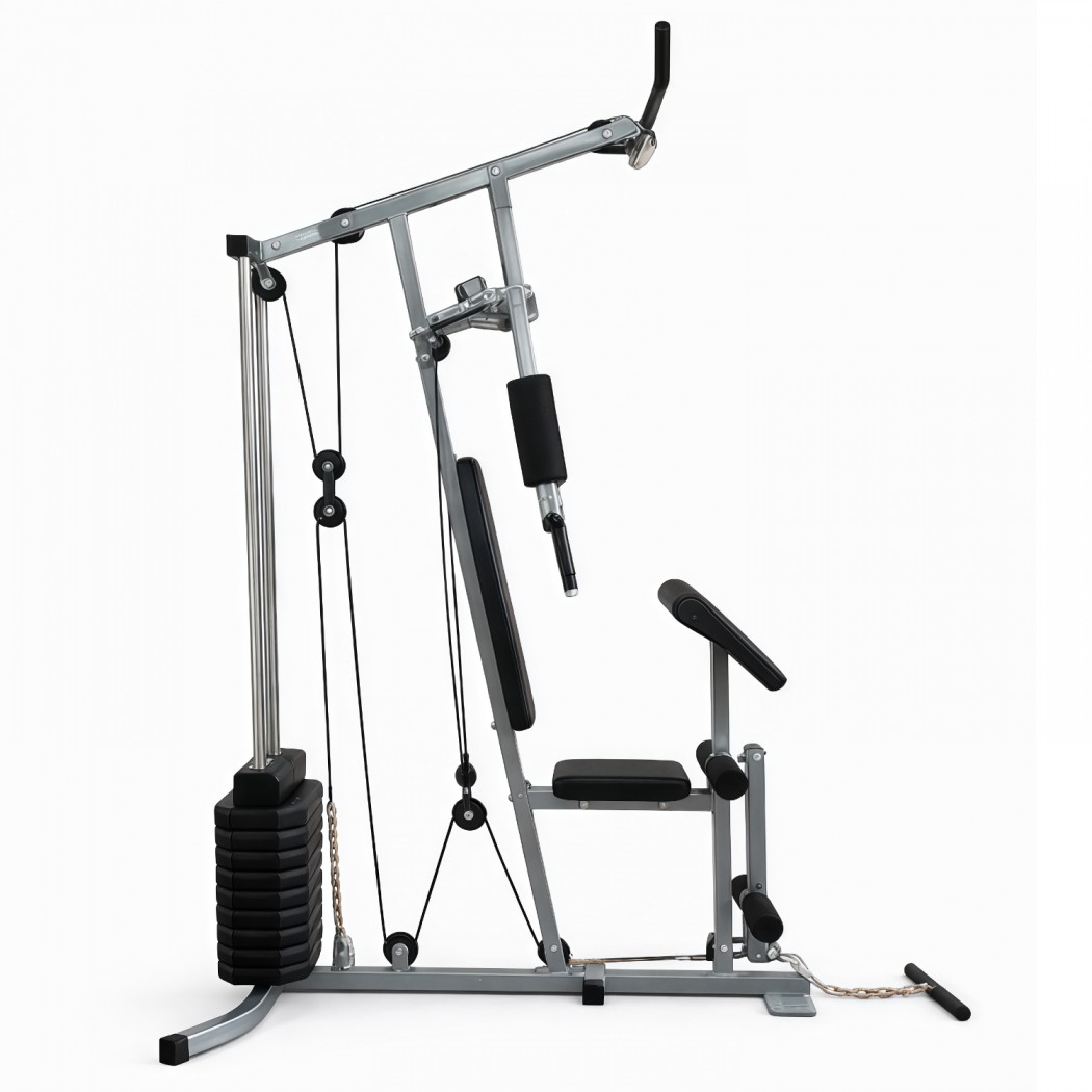 В конструкции предусмотрено 9 свободных блоков и 1 встроенный весовой блок весом 46 кг. Такая система позволяет гибко настраивать нагрузку под уровень подготовки пользователя — от начинающего до уверенного спортсмена. Силовой комплекс удобно использовать как для набора мышечной массы, так и для поддержания формы.