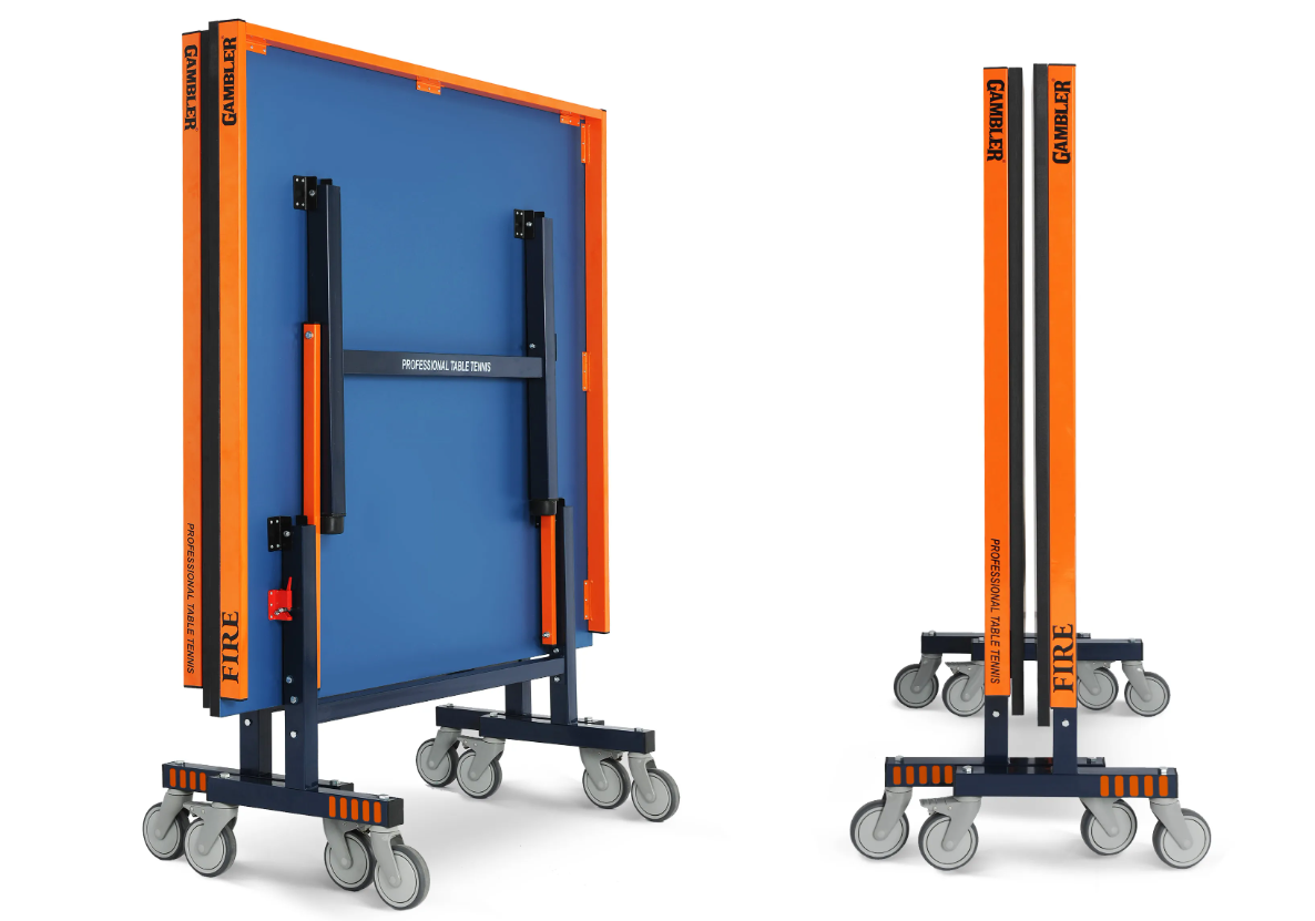 Fire Gambler предназначен для профессиональных игр в закрытых помещениях, идеален для тренировок в спортивных клубах и для проведения турниров. Имеет массивную столешницу толщиной 25 мм и базируется на металлической тележке с 8 транспортировочными обрезиненными роликами.