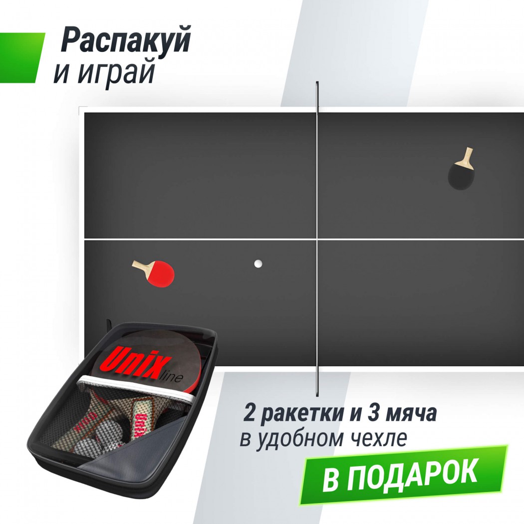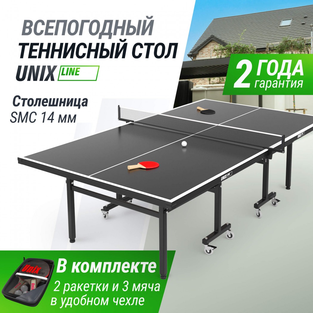 Столешница всепогодного стола UNIX Line изготовлена из SMС - панели с антибликовым покрытием и выдерживает многочисленные нагрузки, мм обладает хорошей устойчивостью к ударам, воздействию окружающей среды, влаге и температурным перепадам. Она не является горючим материалом, и за счет высокой плотности и толщины столешницы (14 мм) обеспечивает великолепный отскок мяча во время игры