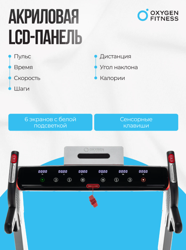 Серия M-Concept - это уникальные тонкие беговые дорожки от OXYGEN FITNESS™. Толщина тренажера в сложенном виде составляет всего 35 см. (или 30 см. при условии снятия небольших поручней). Дорожка легко помещается под кровать, в кладовку или любое другое небольшое место - хранить ее можно и в горизонтальном, и в вертикальном состоянии. Безусловным преимуществом серии является инновационная система перемещения smartMOVE™ - за счет 4 разнонаправленных роликов тренажер можно перемещать в двух проекциях (вперед-назад и вправо-влево) - это очень удобно и, главное, легко в условиях небольших площадей городских квартир. Отдельно стоит выделить другую крайне полезную технологию smartFOLD™ - тренажер складывается и раскладывается простым способом при помощи одного рычага, на весь процесс уйдет не более 5 секунд. Сама дорожка поставляется в уже собранном виде и никакой инструментальной сборки не требует. Ее просто нужно достать из коробки и подключить к розетке. Теперь стоит перейти к главным преимуществам серии M-Concept. Здесь для начала стоит сказать, что практически все ультракомпактные беговые дорожки страдают ограниченным функционалом. Зачастую это вообще чистый маркетинговый продукт, эксплуатирующий желание потребителя заниматься фитнесом в условиях небольшой городской квартиры. Полноценная беговая дорожка по факту "съедает" до 4-ех квадратных метров площади (многие пользователи не складывают дорожку, плюс необходимая зона безопасности вокруг). Соответственно, ради ультракомпактности жертвуется многим - по факту имеем слабые неустойчивые рамы, откровенно маломощные двигатели, скорость до 6 или 8 км./ч., отсутствие амортизации и угла наклона. Некоторые модели не имеют поручней. Ходьба, и тем более бег на таких дорожках достаточно опасен - при небольшой потере равновесия удержаться не за что, и все в итоге может закончиться травмой. В целом, стоит очень внимательно отнестись к покупке ультракомпактной беговой дорожки, объективно оценить плюсы и минусы, понять сможете ли Вы в принципе пользоваться этим изделием. OXYGEN FITNESS™ M-Concept - это принципиально иной подход к компактным беговым дорожкам. Да, возможно, толщина здесь немного больше, чем в ультратонких аналогах. Но это настоящая, полноценная беговая дорожка. На ней можно комфортно и эффективно заниматься, на ней можно достигать реальных результатов в улучшении своей физической формы и, наконец, она безопасна. Итак, давайте посмотрим на характеристики. В M-concept Sport установлен надежный двигатель производства японской Fuji Electric, его мощность составляет 2.25 л.с. в режиме постоянной эксплуатации (или 4.05 л.с. при пиковых нагрузках). Именно мощный двигатель позволяет разогнать полотно до 14 км./ч. Важно, что размер полотна просто огромный для такого компактного тренажера - рабочая беговая поверхность составляет 130 см. в длину и 48 см. в ширину. По второму параметру дорожка вообще приближается к клубному уровню. Более того, в M-Concept Sport есть даже автоматическая регулировка угла наклона от 0 до 12% - за счет чего значительно увеличивается вариативность тренировок. Еще одна ахиллесова пята ультракомпактов - амортизация. По факту ее нет - как бы производитель не доказывал обратное. При такой тонкой раме поставить полноценную систему амортизации невозможно. В серии M-Concept, за счет большей толщины рамы, вопрос решен радикально - зд